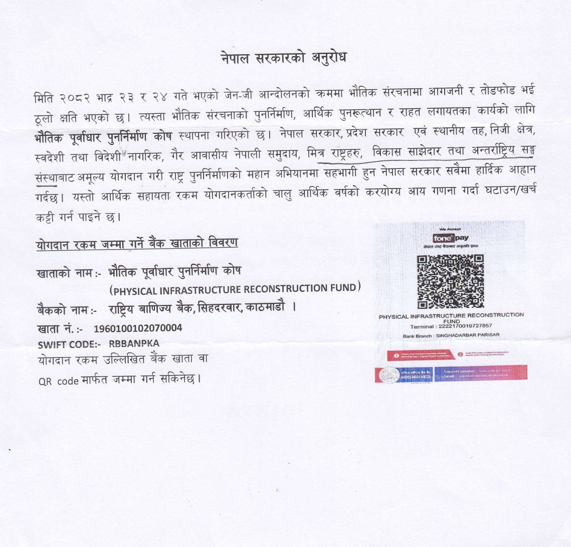 योगदान रकम जम्मा गर्ने सम्बन्धमा नेपाल सरकारको अनुरोध।